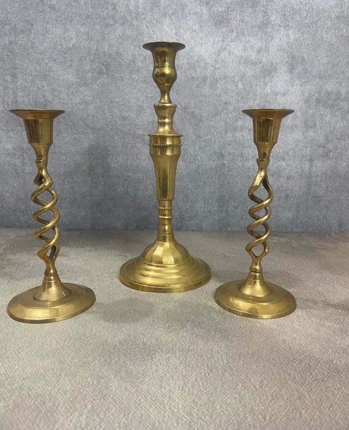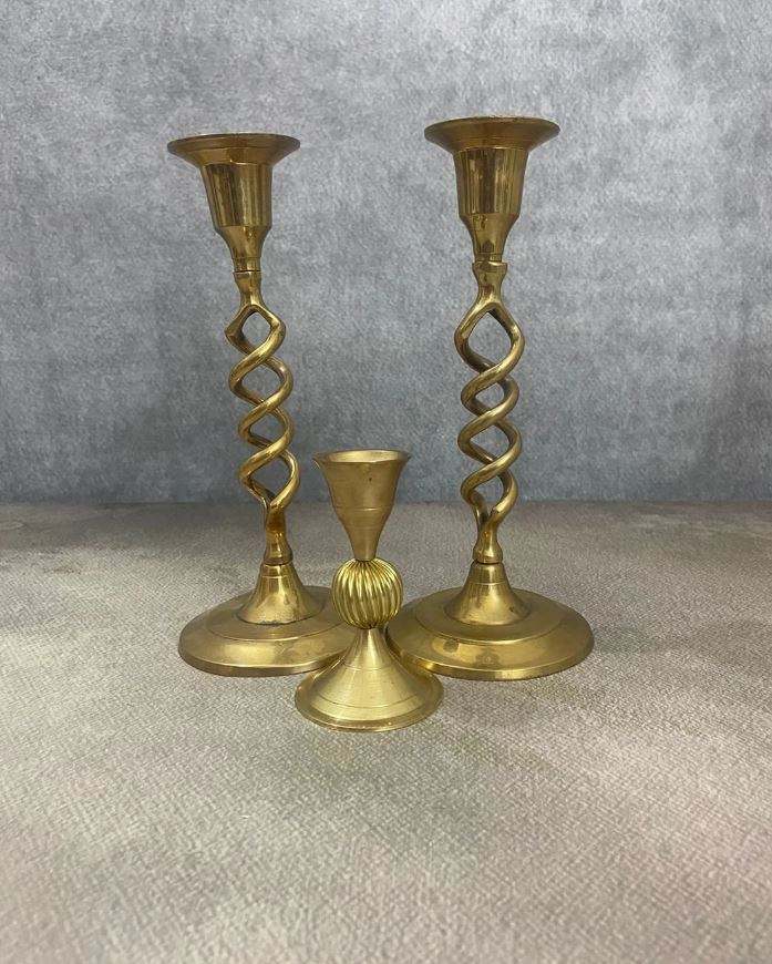 Brass Candlesticks Collection Antique Gift Idea Charming Curated Brass