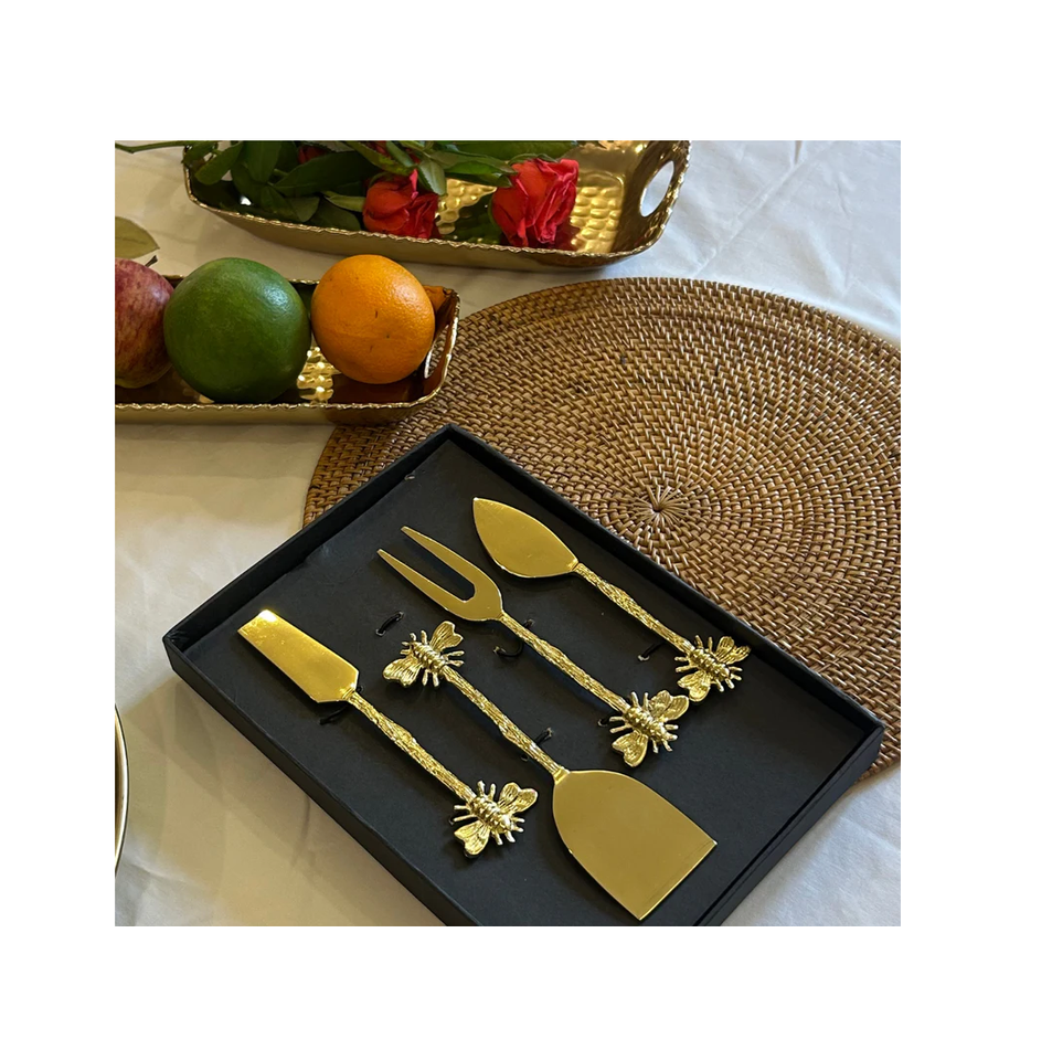Brass Cheese Set Kitchenware Tabletop Cheese Slicer and Cutter Cheese Set 4 Pieces Black Box Packing Box
