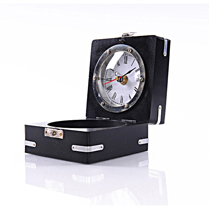 Aluminium Compass Clock Wooden Case Decorative Display Model 15.2Lx10.8Wx14H cm Coastal Design Lightweight Tabletop Old Modern