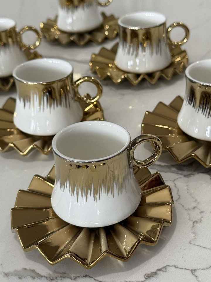 Brass Cup Art Deco Design European Style Creative Black V-Shape Pattern High Quality Gold-Plated Handle for Wedding Occasion