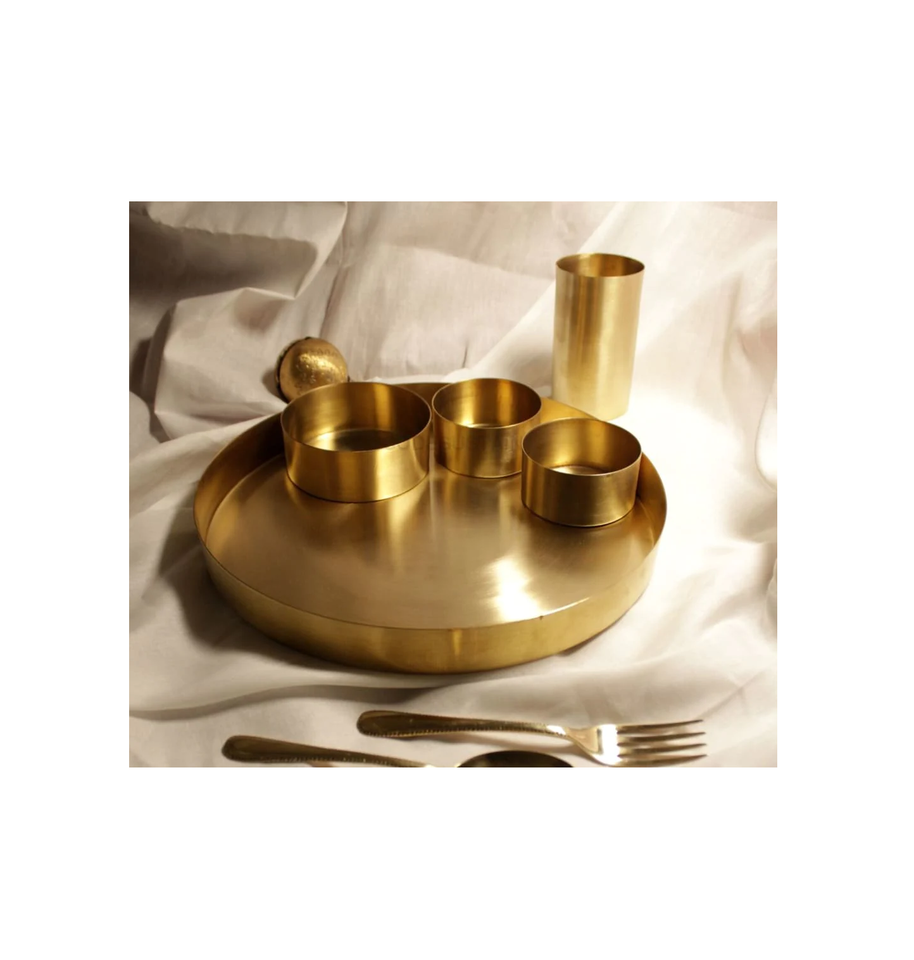 Brass Dinner Set Modern Handmade Hammered Design Shiny Polished Dinner Brass Set for Wholesale