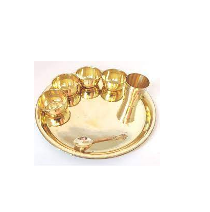 Brass Dinner Set for Tabletop Decorative Item With 2 Bowl and Spoon and Plate Brass Dinner Set for Wholesale