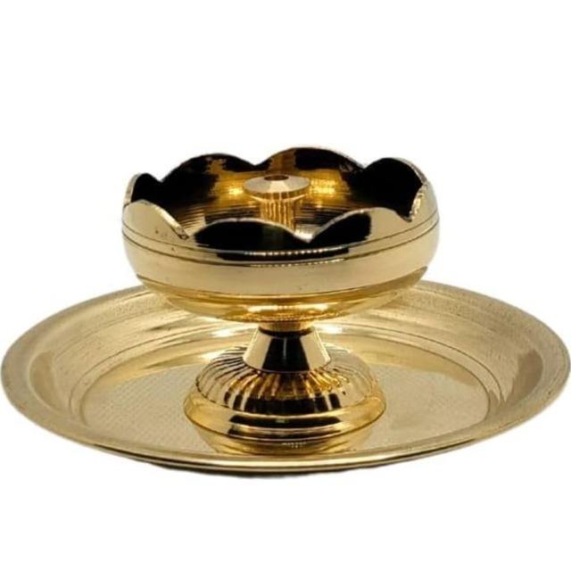 Brass Diya Plate for Home Temple Articles Eco-Friendly Metal Deepak Deepam Oil Lamp for Puja Pooja Aarti Arti Diwali Decor