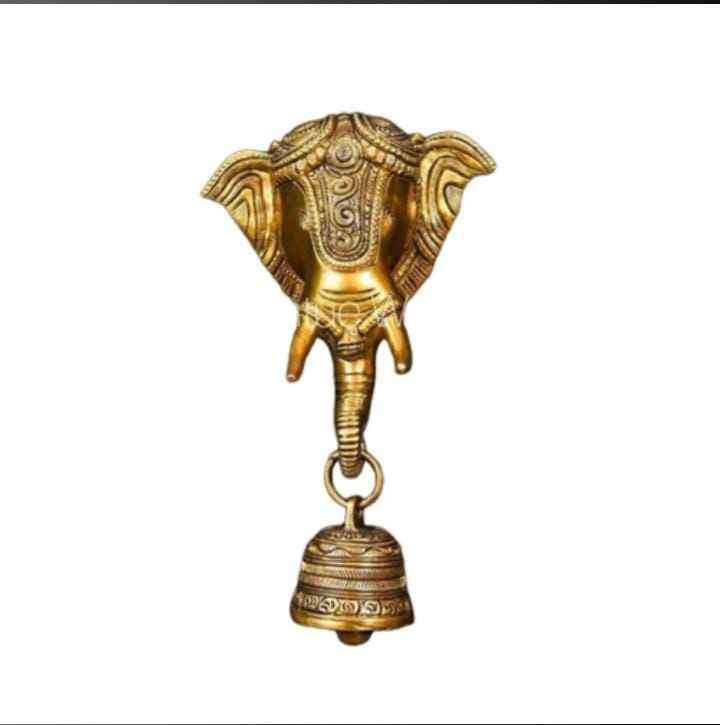 Hard Enamel Brass Elephant Face Wall Hanging Bell Inspired by Buddhism
