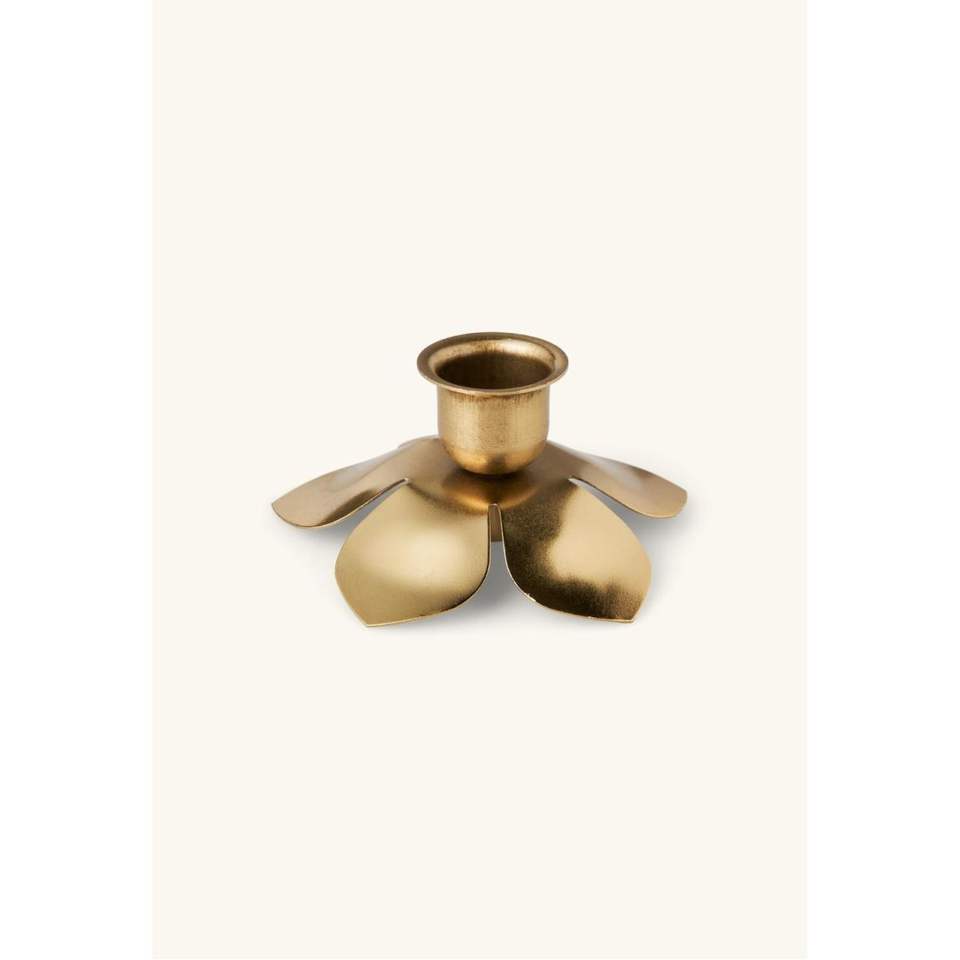Brass Finish Foliage Candle Stand Modern Gold Leaf Branch Taper Holder with Faux Pearls Luxury Event & Holiday Tabletop Ornament