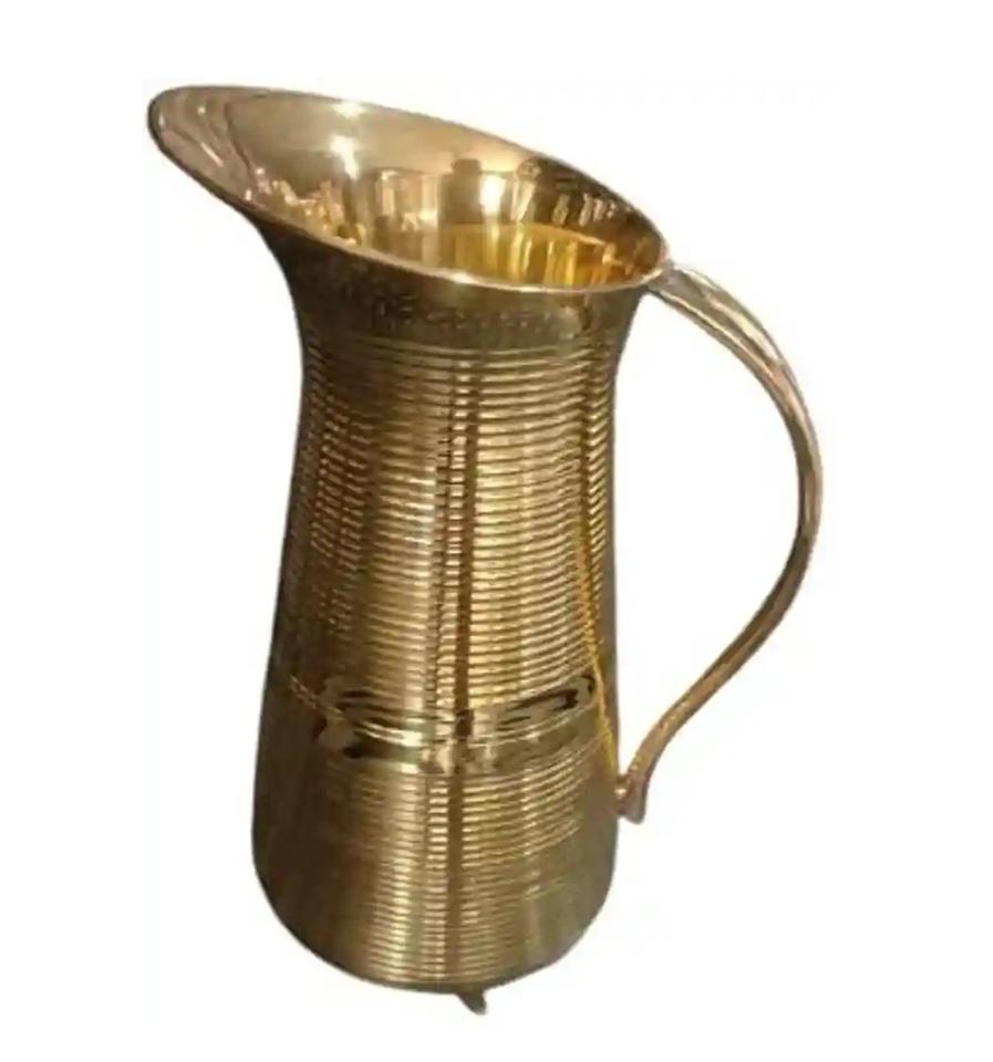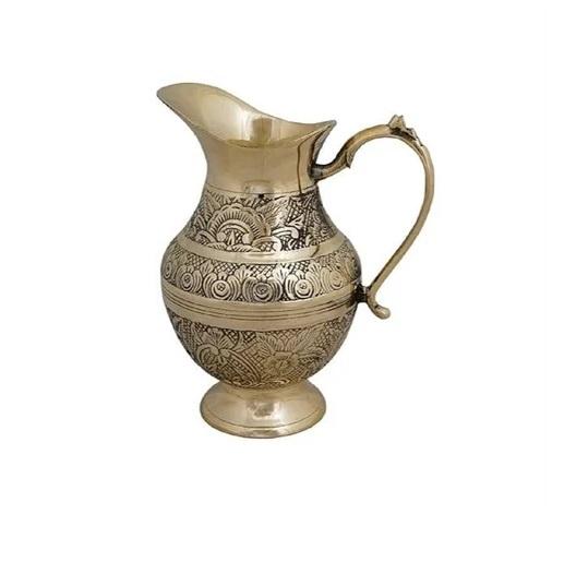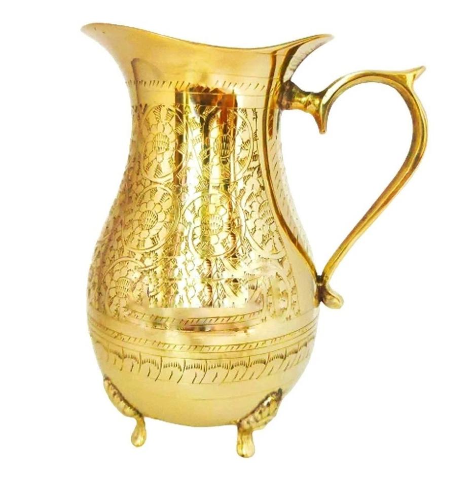 Brass Finished Metal Water Pitcher Hand Crafted High Quality Brass Designer Water Jug with Handle Latest Design.