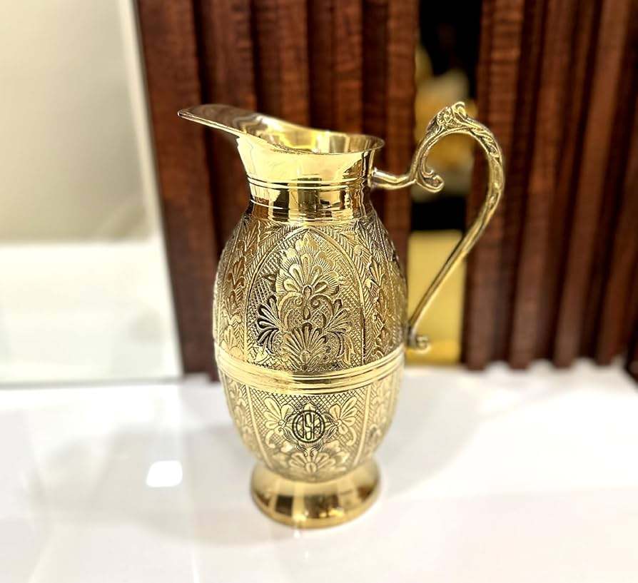 Brass Finished Metal Water Pitcher Hand Crafted Water Jug Pitcher High Quality Products Custom Price and Packing Available.