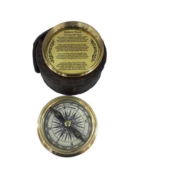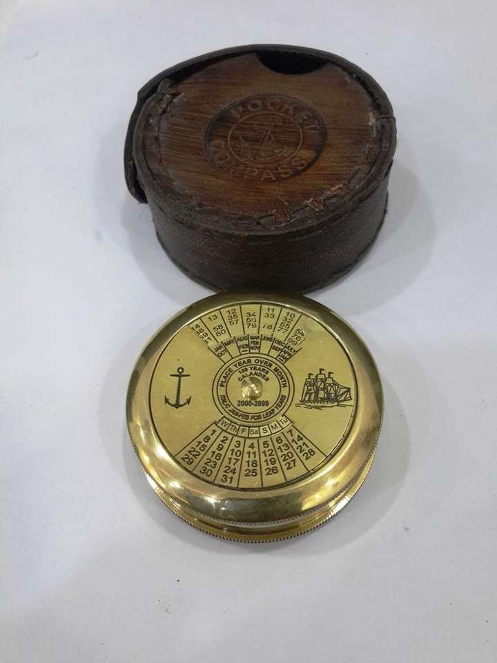 Brass Flat Compass With Leather Box - Nautical 100 Year Calendar Pocket Compass Camping Accessories