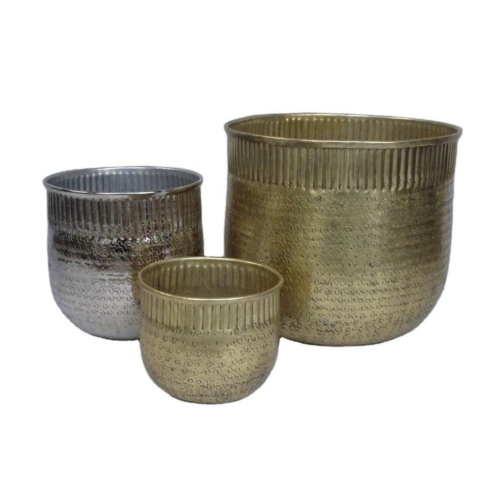 Brass Flower Pot Silver Aluminium Plant Pot Hammered Decorative Modern Table Vase Planter India Metal Planters Set of 4 Pcs