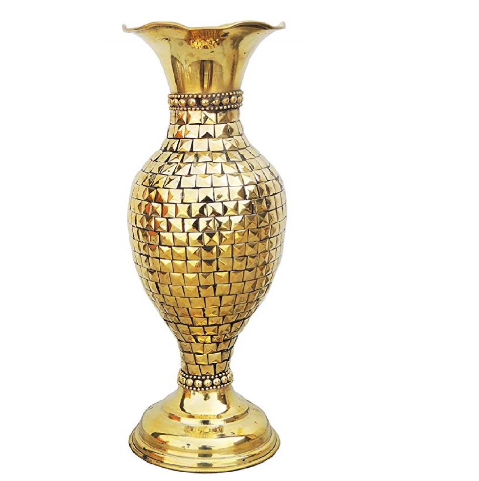 Brass Flower Vase Set of 2 Pcs With Engraving Gold Finished For Home Decor Table Decoration High Quality Flower Vase
