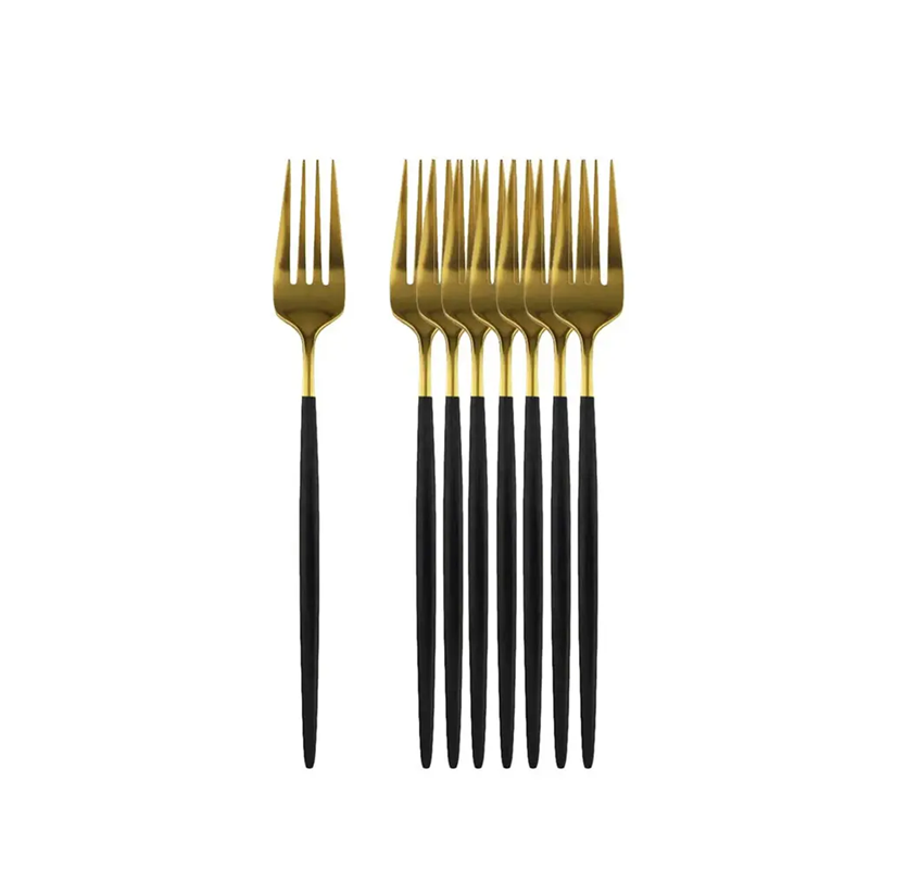 Brass Fork Spoon gold Flatware Set with black handle Mirrored Steel Gold Hammered Cutlery Set 3 piece hot selling