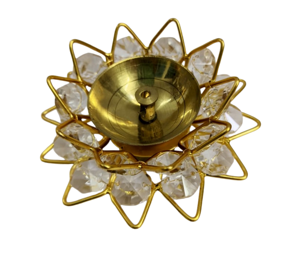 Brass Gallery Brass Small Bowl Crystal Diya Round Shape Kamal Deep Akhand Jyoti Oil Lamp for Home Temple Puja Decor Gifts