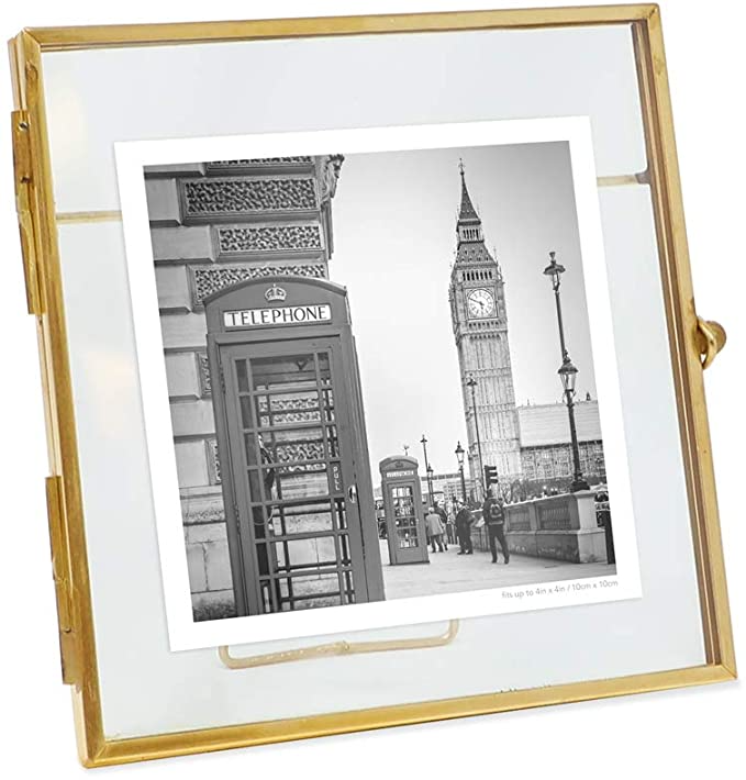 Brass Glass Frame for Pressed Flower Leaf and Art Work Tabletop Metal Picture Frame Clear Double Glass Floating Frame for Home