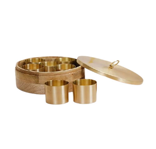 Bulk Brass Gold Color Masala Dabba With Lid Round Shape Kitchen Accessories Spice Container Box With Superior Quality