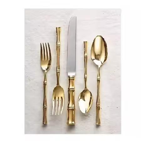 Brass Gold Color Metal Cutlery Set for Home Hotel Restaurant Catering Tableware Serving Sets