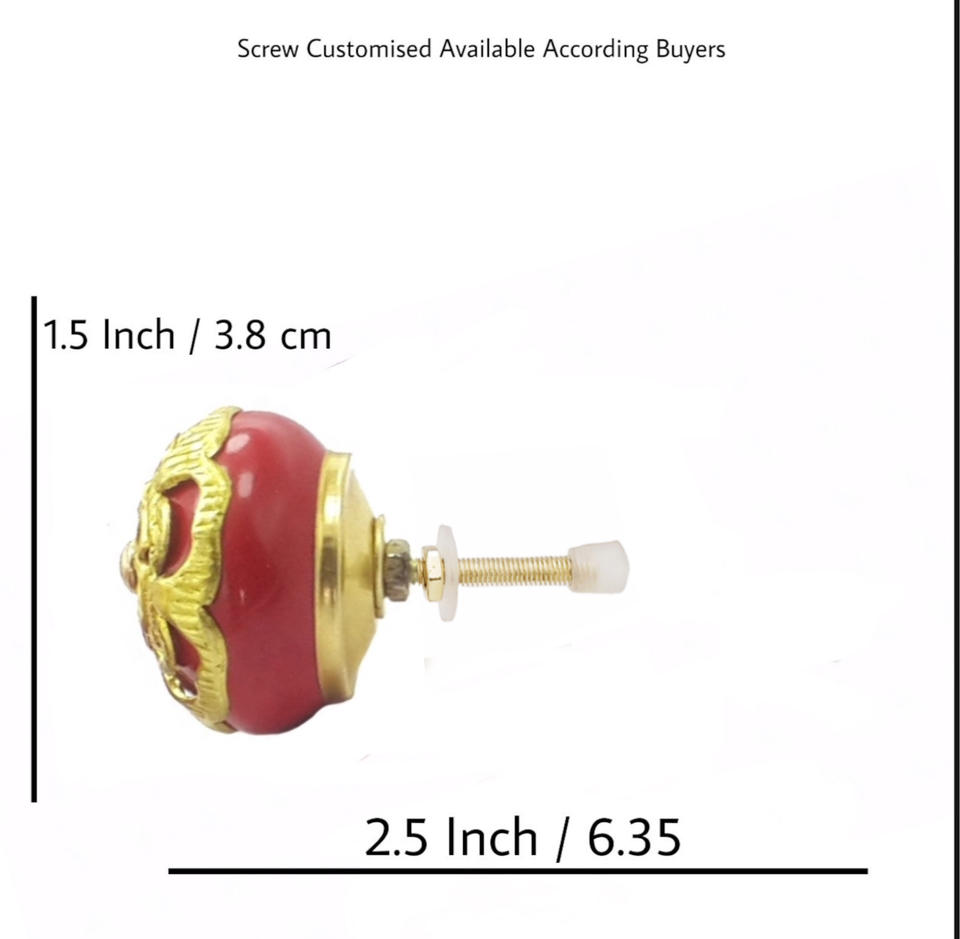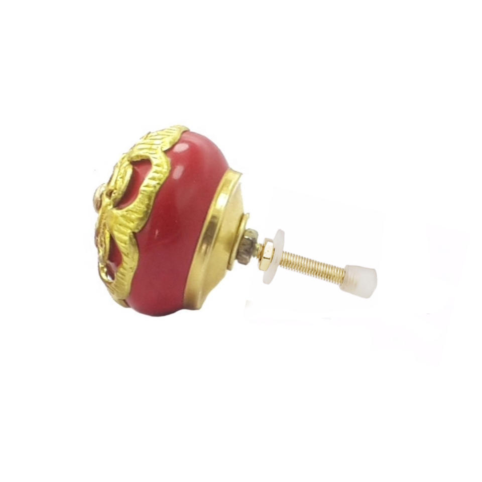 Brass Gold Moroccan Filigree Flower Red Ceramic Knobs Industrial Metal Door Drawer Cabinet Handle Pulls for Bedroom Dining