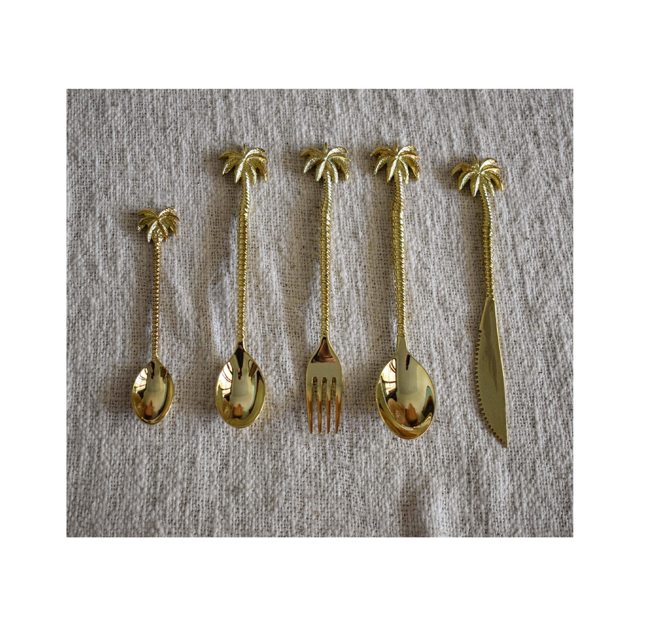 Brass Gold Plated Cutlery With Decorative Embossed Design Mirrored steel Christmas party flatware spoons