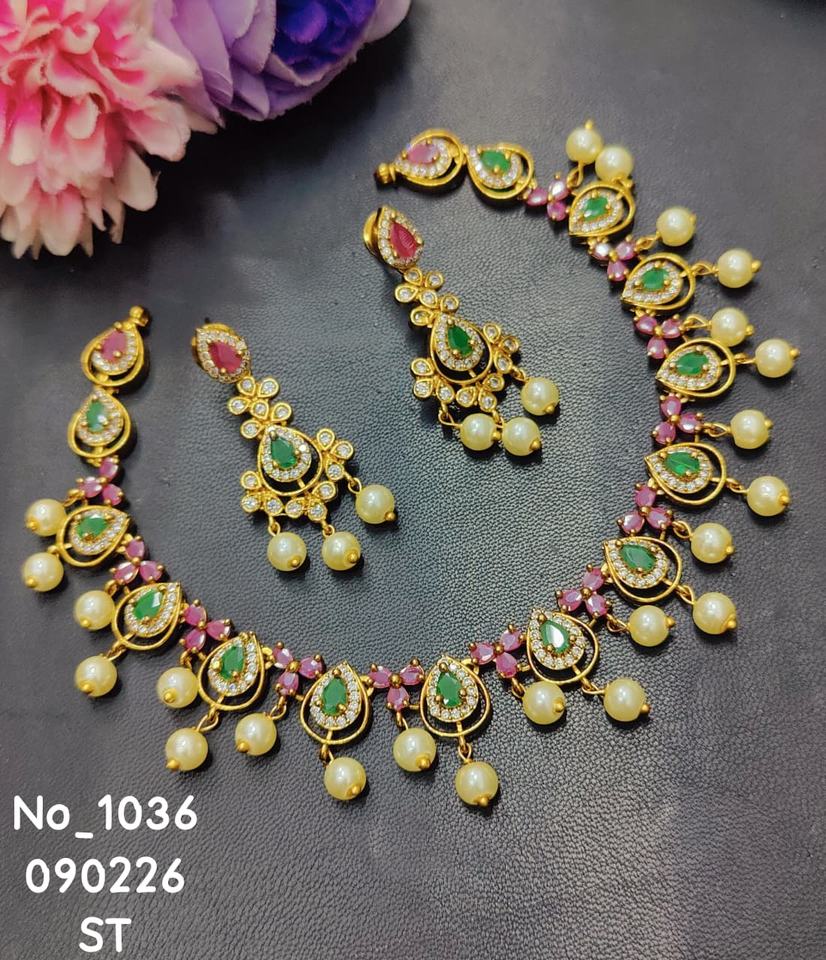 Brass Gold Plated Temple Jewellery Set with Stones & Pearl Drops Bridal Ethnic Party Anniversary Necklace Set