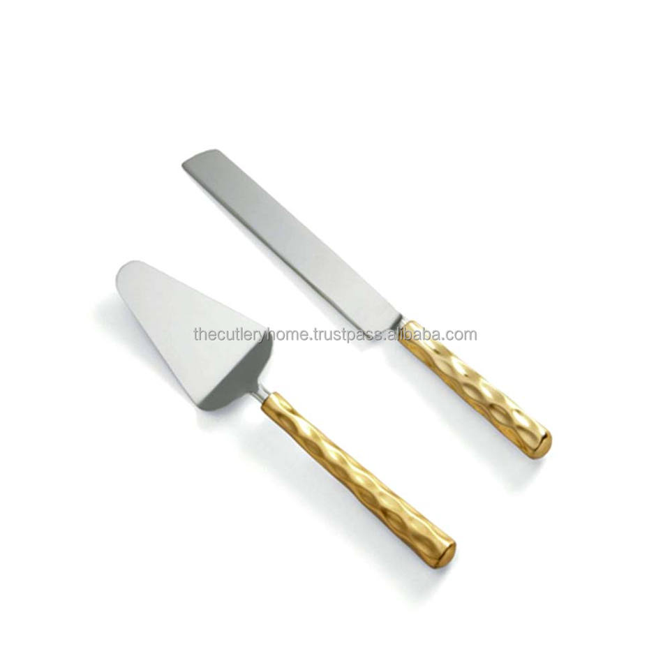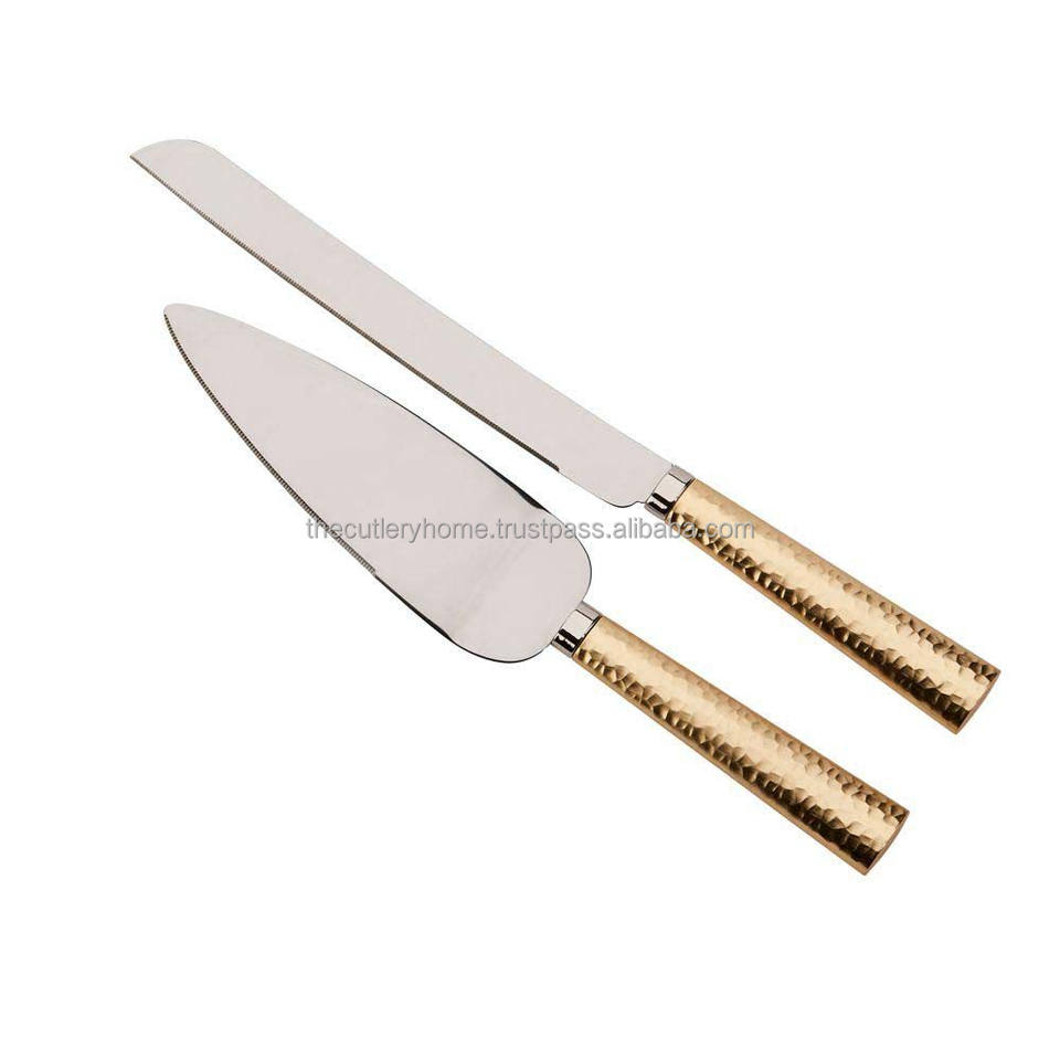 Brass Handmade Handle Round Circular Hammerd Finished Stainless Steel Cake Server Wedding Cake Server Set