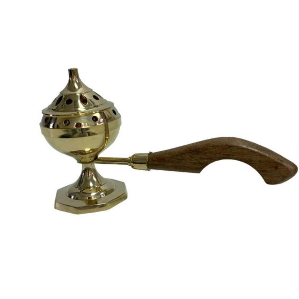 Brass Incense Burner With Wooden Handle Metal Loban Diffuser Church Temple home decor Supplies Incense Burner Wholesale price