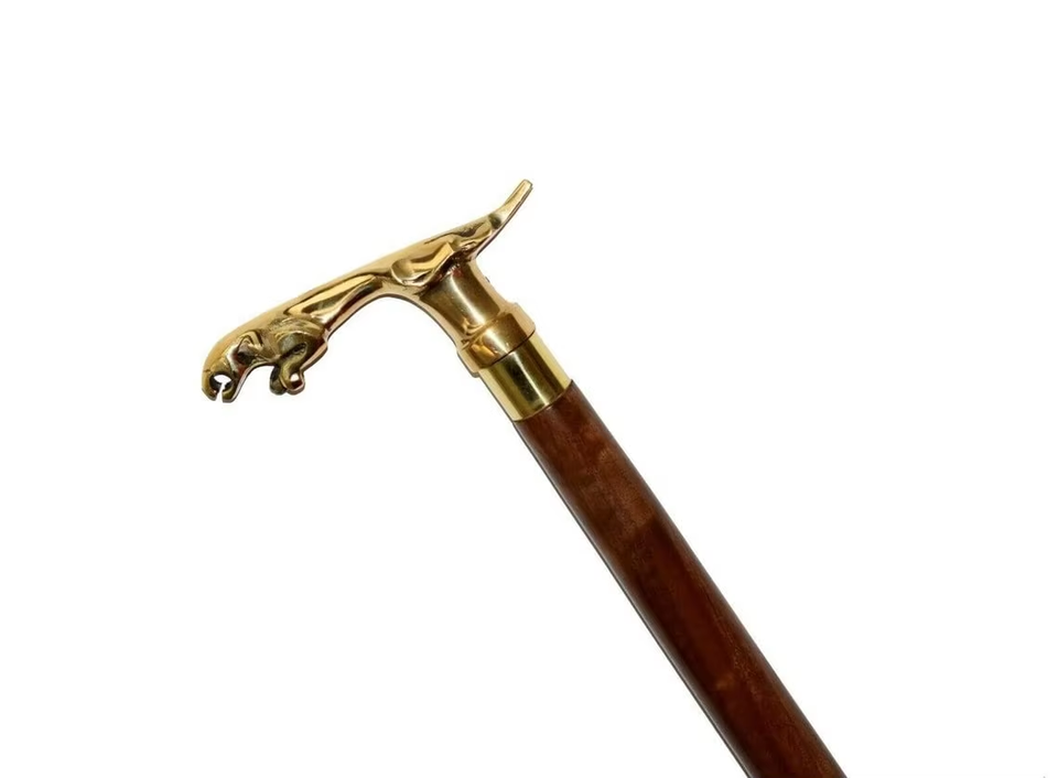 Brass Jaguar Handle Wood Walking Stick Cane 3 Fold Open Nautical Vintage Style for Gift Item Gift for Old Man & Woman