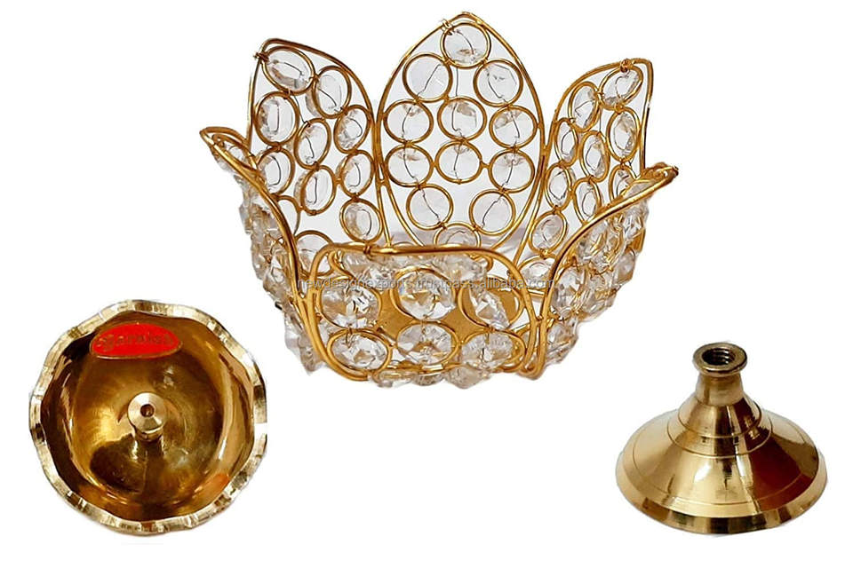 Brass Kamal Deep Akhand Jyoti Oil Lamp Big Bowl Crystal Diya Shape Home Temple Puja Decor Gift Metal Material