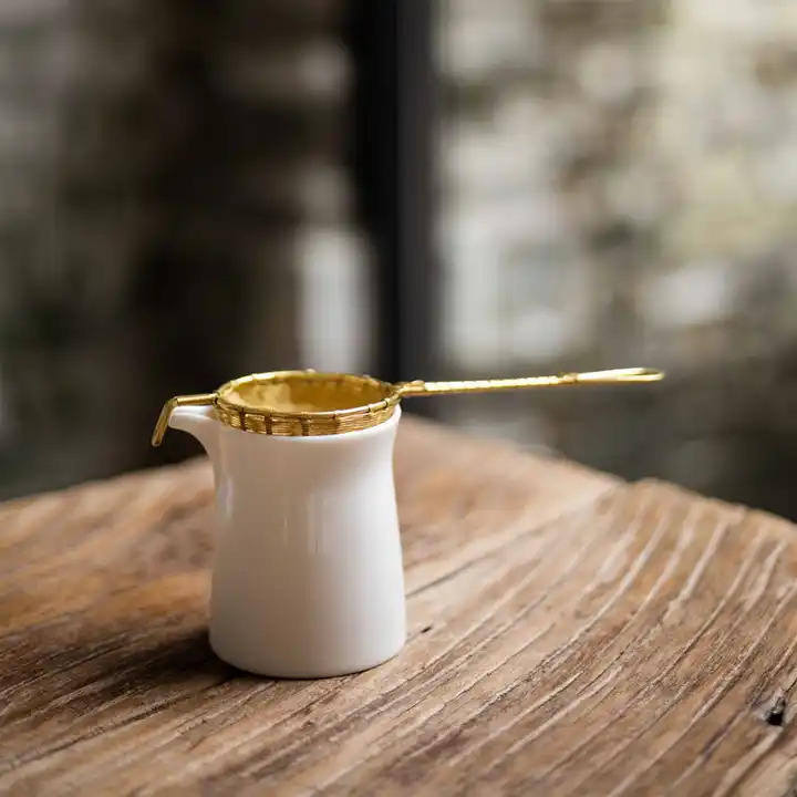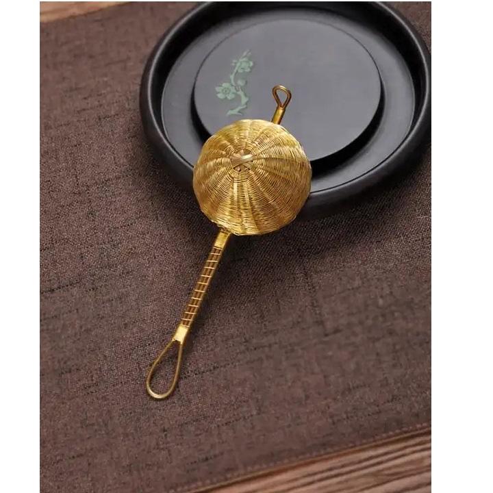 Brass Long Handle Wire Mesh Tea Strainers for Loose Tea Hand Woven Golden Tea Strainer for Home & Hotel Usage