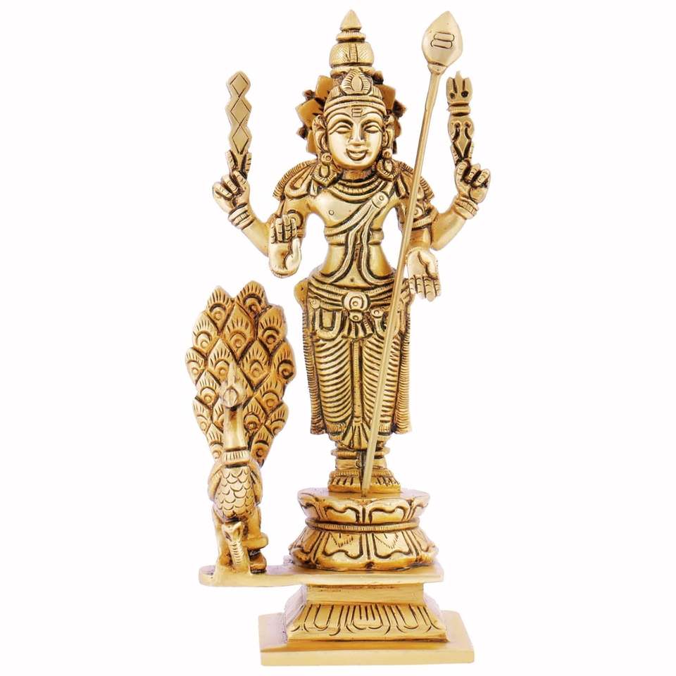 Brass Lord Murugan Kartikeya Swami Statue