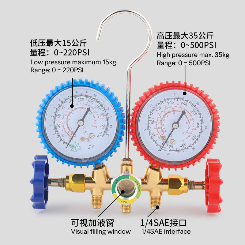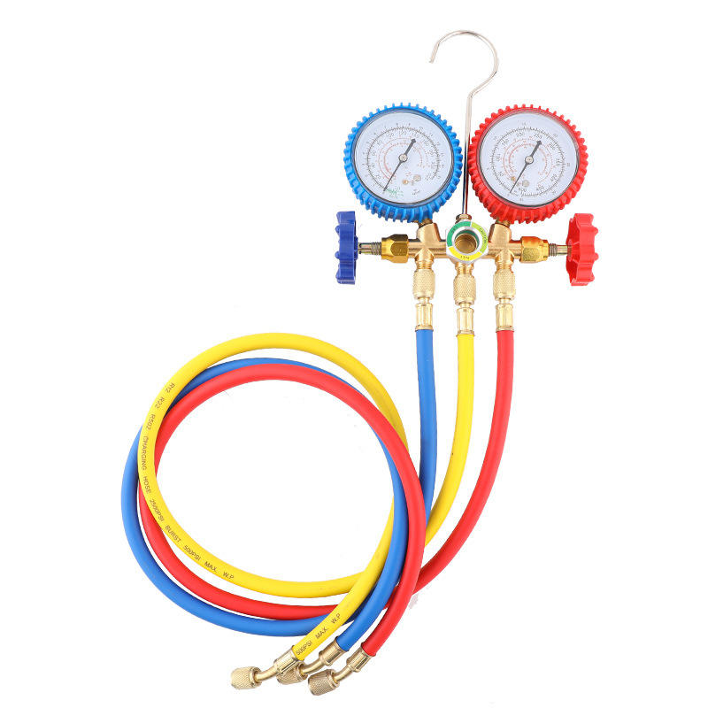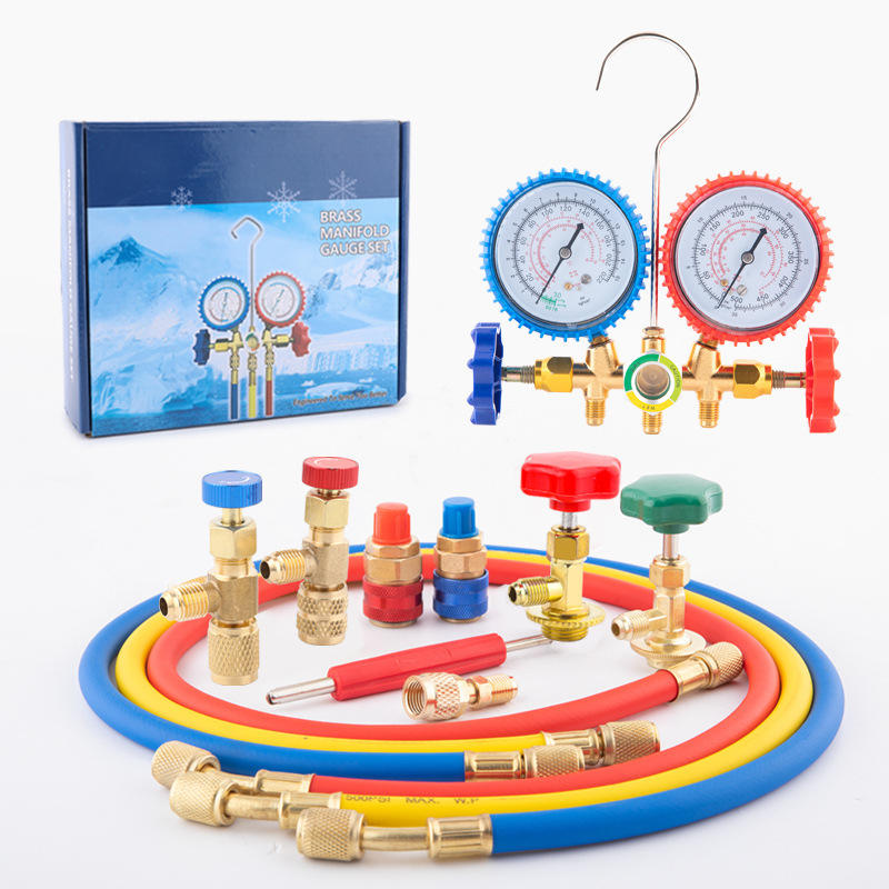 Brass Manifold Gauge Set R134A R22 Refrigerant Pressure Gauge Kit For Automotive Air Conditioning System