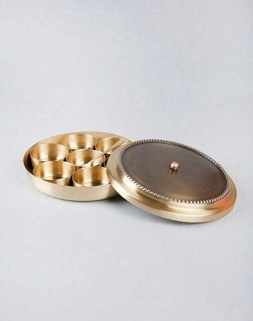 Brass Masala Box With Inner Cups For Spice Storage And Authentic Indian Kitchen Serving Purpose