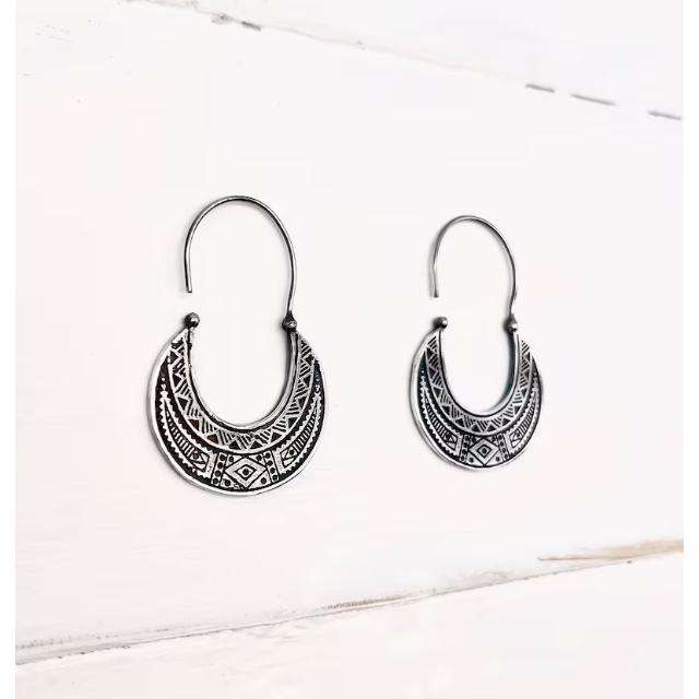 Brass Metal 925 Silver Plated Hoop Earrings, Boho Jewelry Ethnic Boho Tribal, Handmade Earrings Jewelry