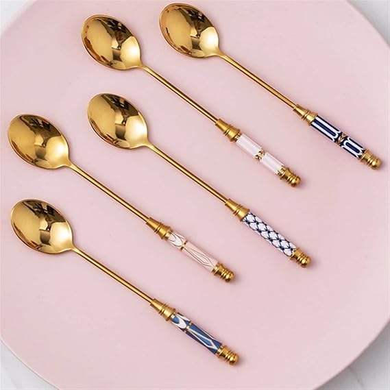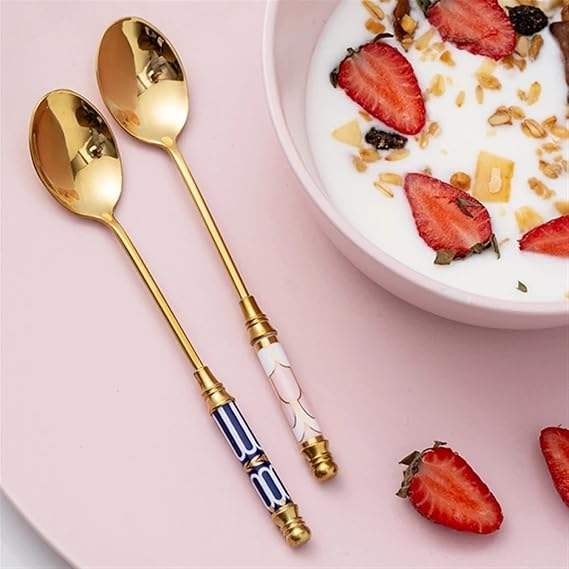Brass Metal Golden Spoon Set Coffee Spoon Dessert Cutlery Kitchen Tableware 4.7 Inches Stainless Steel 4 Spoons & 4 Forks