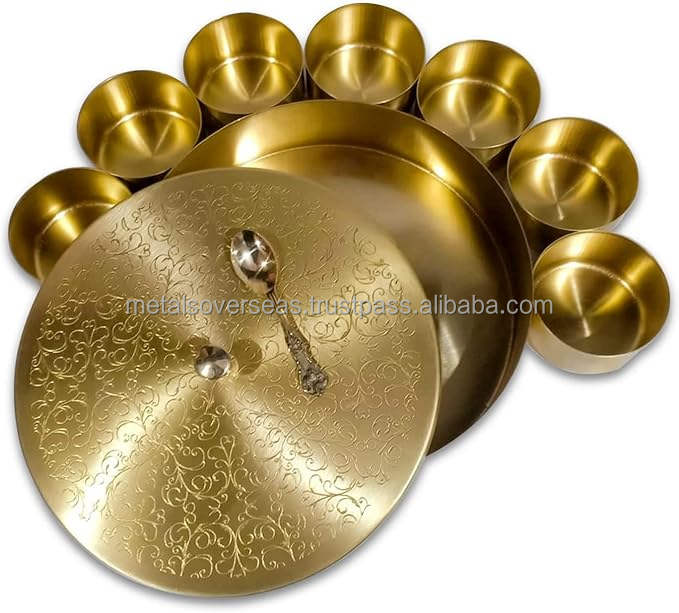 Brass Metal Spice Box Kitchen Storage Containers Indian Spice Masala Storage Box Gold Box with Spoon Containers Lid Design