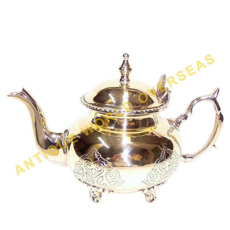 Brass Moroccan Teapot Silver Plated Traditional Design Hand Engraved Metal Tea Kettle Ethnic Style Home Decor Gift