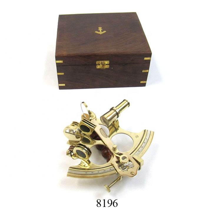 Brass Nautical Scientific Antique Sextant With Leather Case Compasses Marine Sextant with Wooden Box