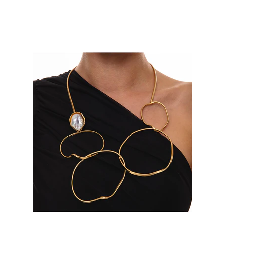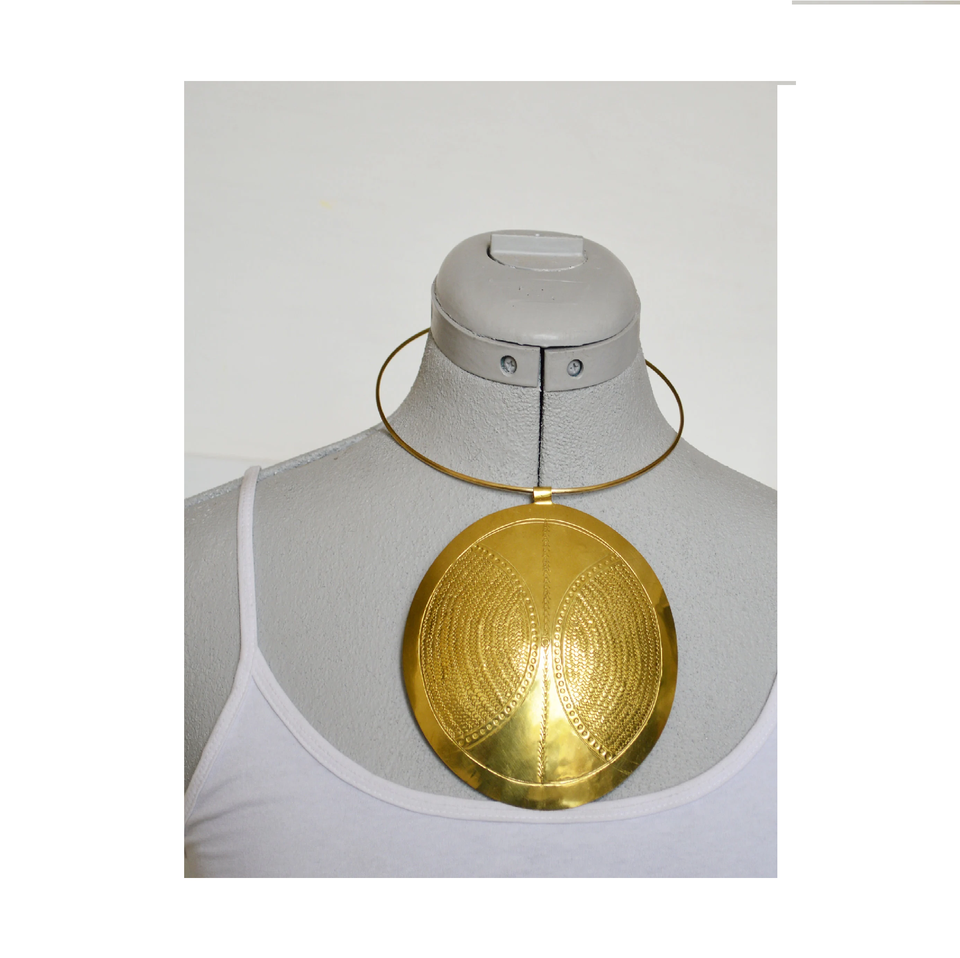 Brass Necklace Eight Star Compass Double Layer Necklace and Round Design Piece for Gift Chain Partyware Use