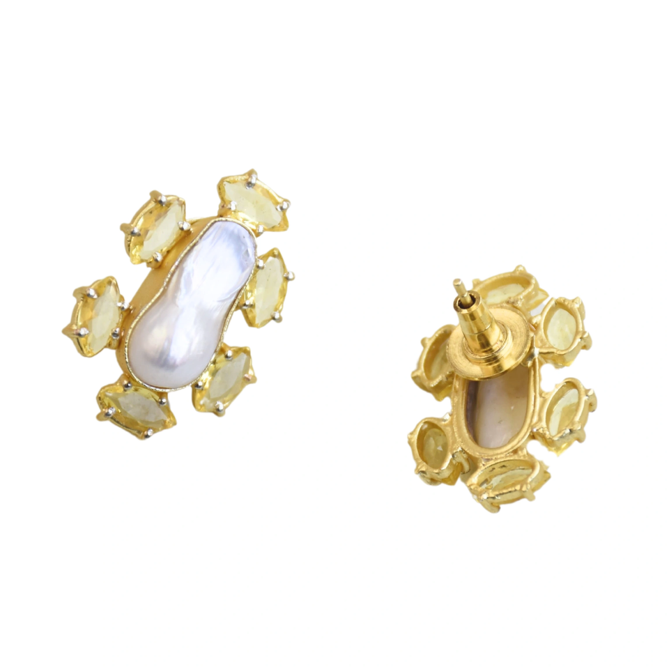 Brass Pearl Stud Earrings Wholesale Stud Authentic Gemstone Jewelry High Polish Gold Plated Unique Designer Pattern High