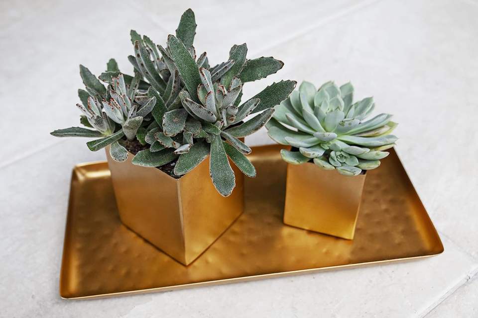 Brass Planter With Split Smooth Brushed Finishes - Beautiful Pot for Succulents Cactus Plants Flowers - Indoor and Outdoor