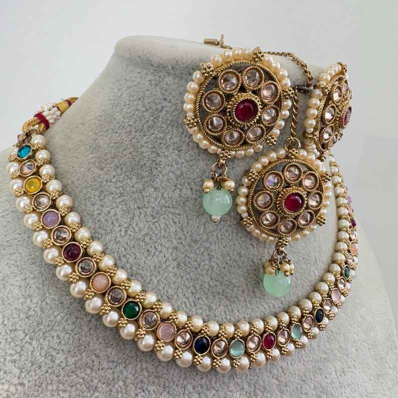Keyword:9 Ratan Antique Polki Kundan Choker Necklace Pakistani Bridal Jewelry