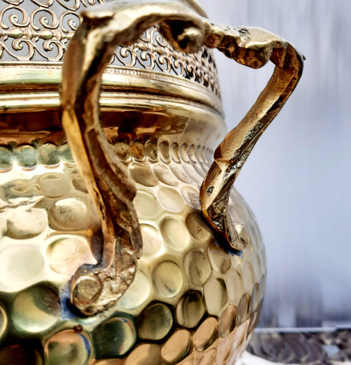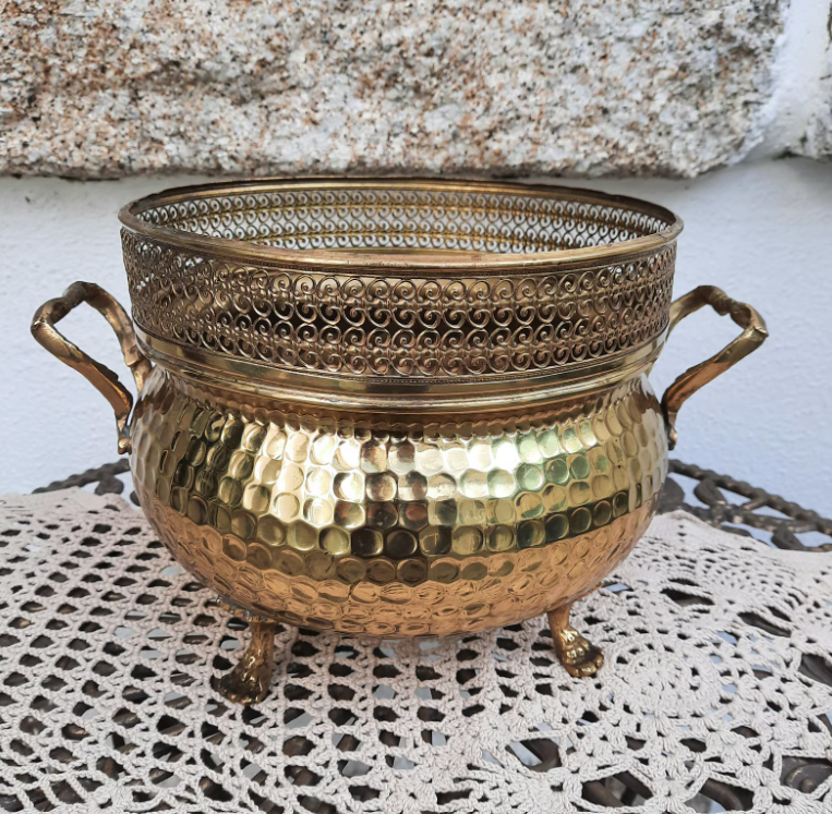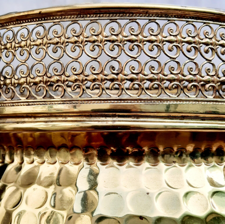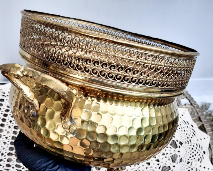 Brass Round Embossed Garden Metal Planters & Flower Plant Pot Home Decorative Gold Round Flower Planter Set for Garden & Balcony
