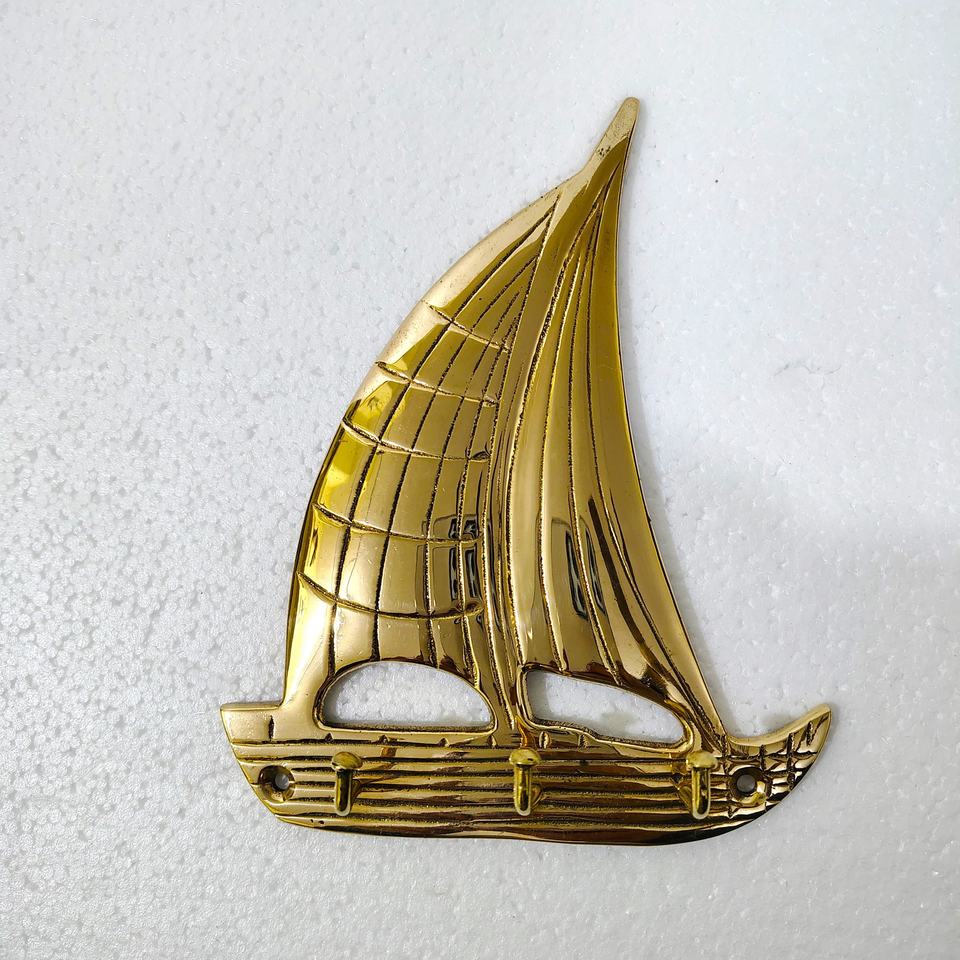 Brass Sailing Boat Wall Mount 3-Hook Key Rack Towel Eco-Friendly Detachable Clothing Decorative Ship Hooks