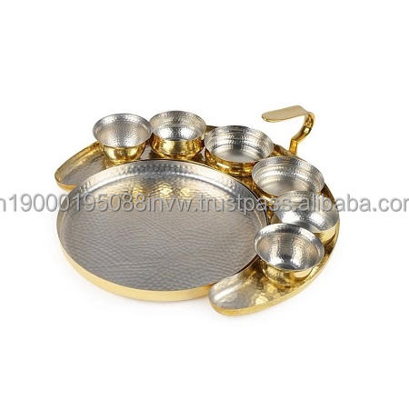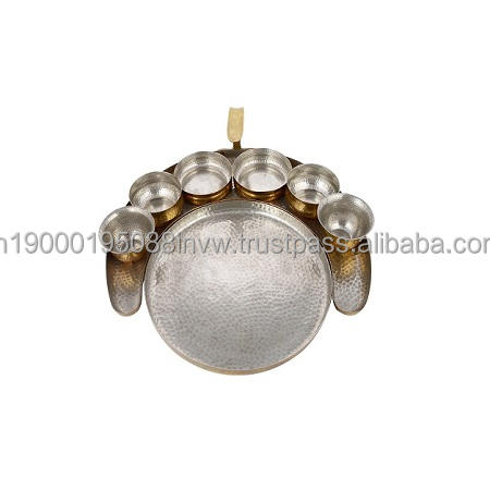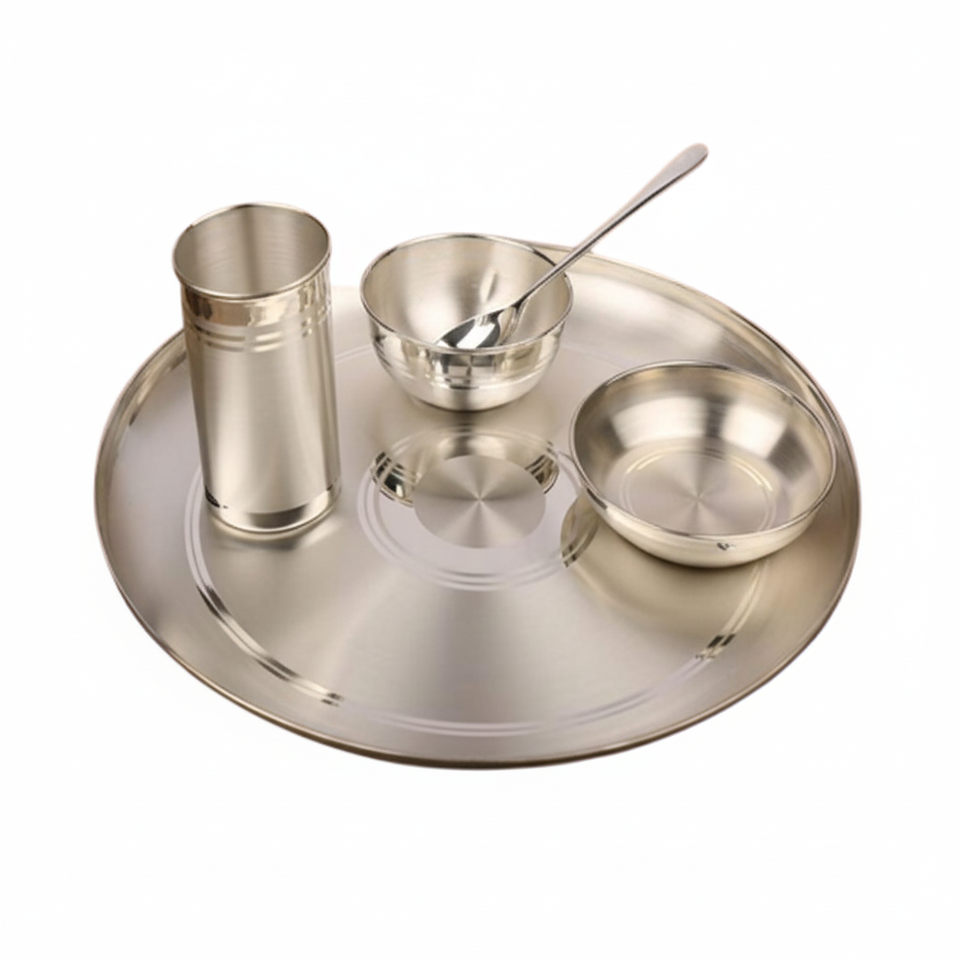 Brass Silver Color Food Thali Set 2 Bowl 1 Glass 1 Spoon and 1 Thali For Lunch And Dinner At Bestest Prices