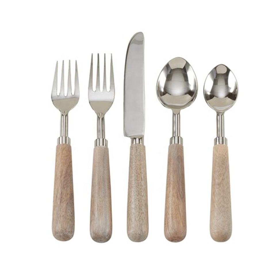 Brass Silver Handle with Vintage Wooden Handle Stainless Steel Decorative Cutlery Set
