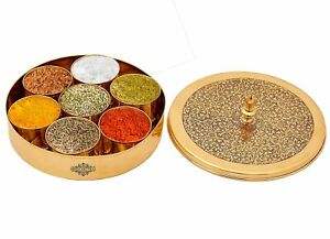 Brass Spices Storage Box Hand Painted Hand Made box kitchen tabletop pure with engraving design masala box made of brass