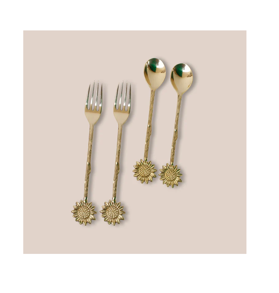 Brass Spoon Set with Pineapple Twist Handle Gold Plated Mirror Polish Eco-Friendly Flatware for Weddings & Giveaways