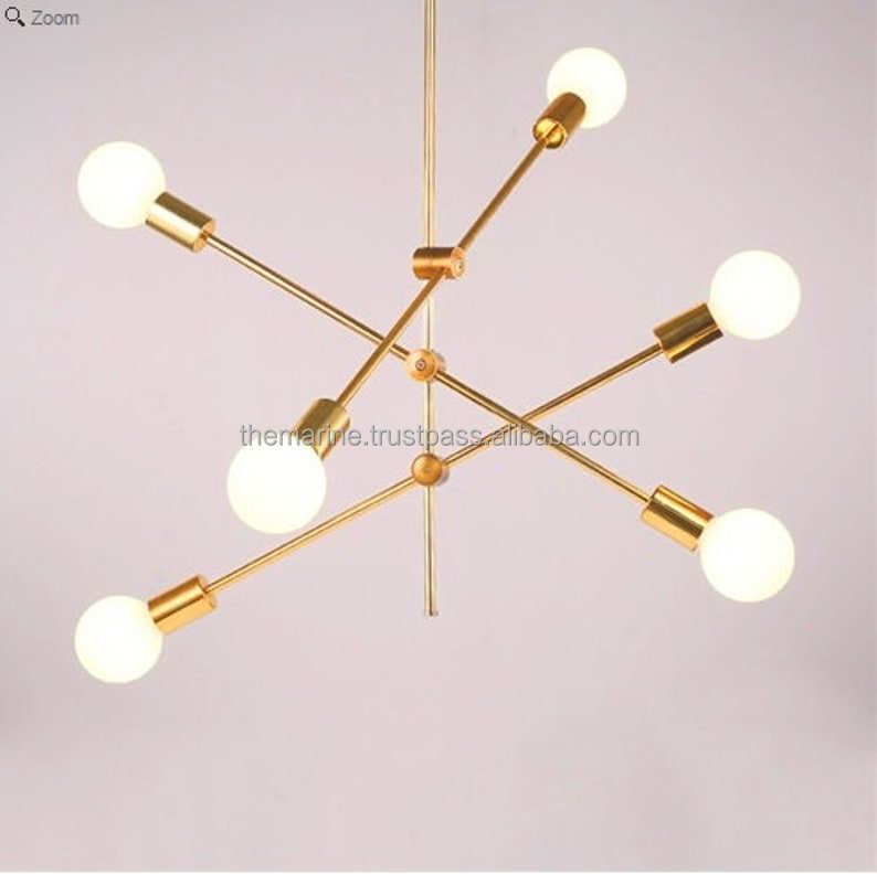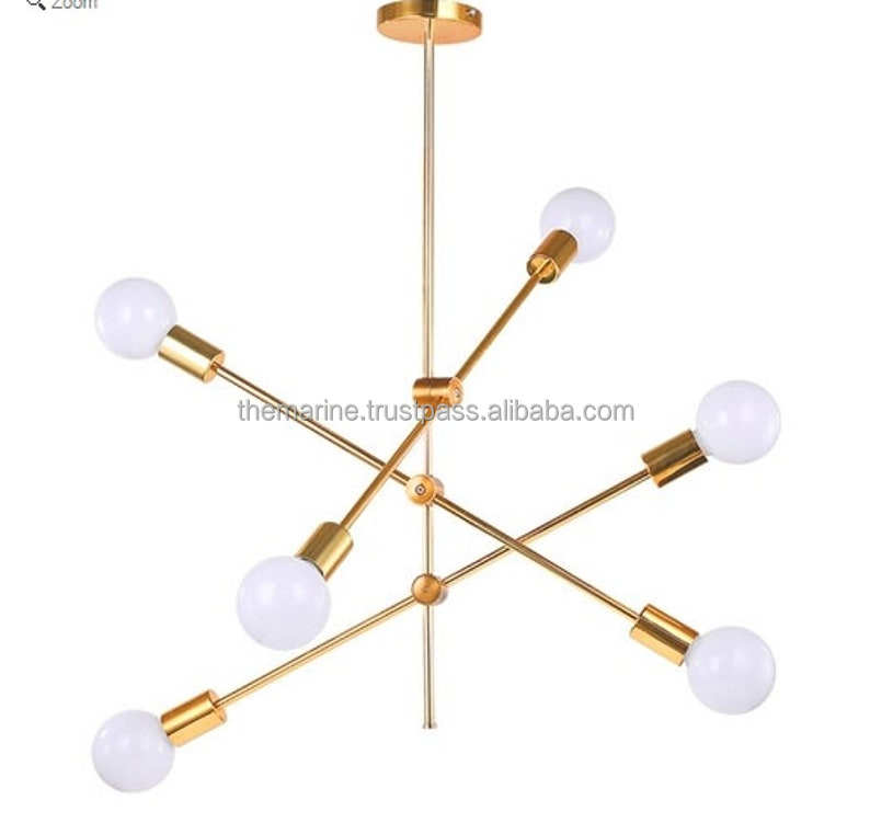Modern Industrial Vintage Brass Sputnik Chandelier 6-Light Starburst Pendant E26 Large Ceiling Lighting Fixture Home Mid Century