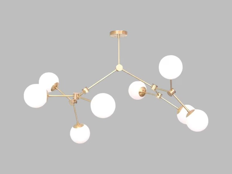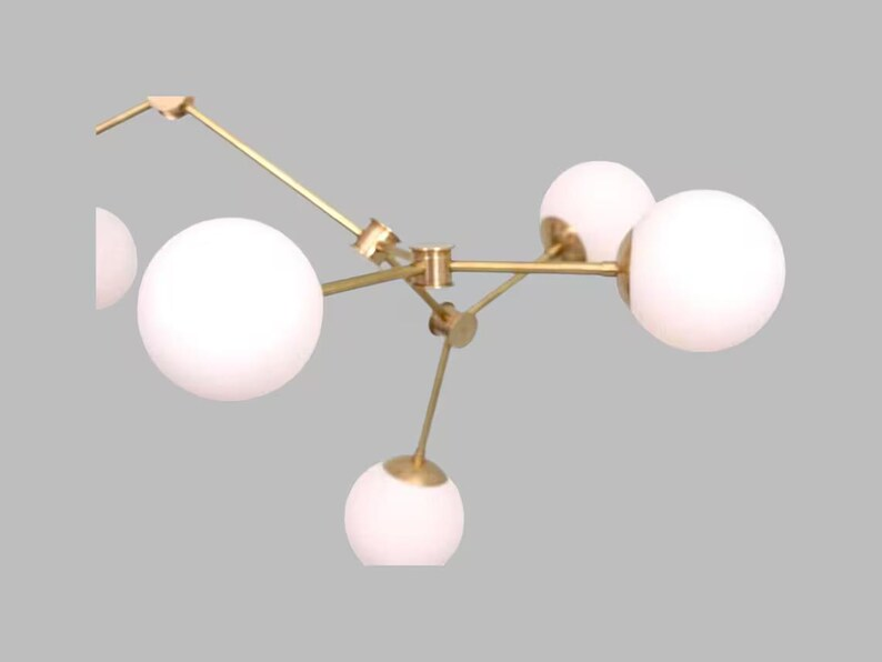 Brass Sputnik Chandelier Mid Century Modern Eight Arm Glass Globe Light Elegant Retro Ceiling Fixture for Home Decor
