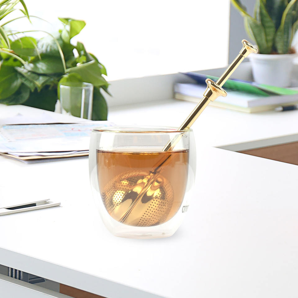 Brass Tea Strainer with Long Push Handle Loose Leaf Tea Infuser Handmade Fine Mesh Rose Gold Kitchenware Tea Strainer