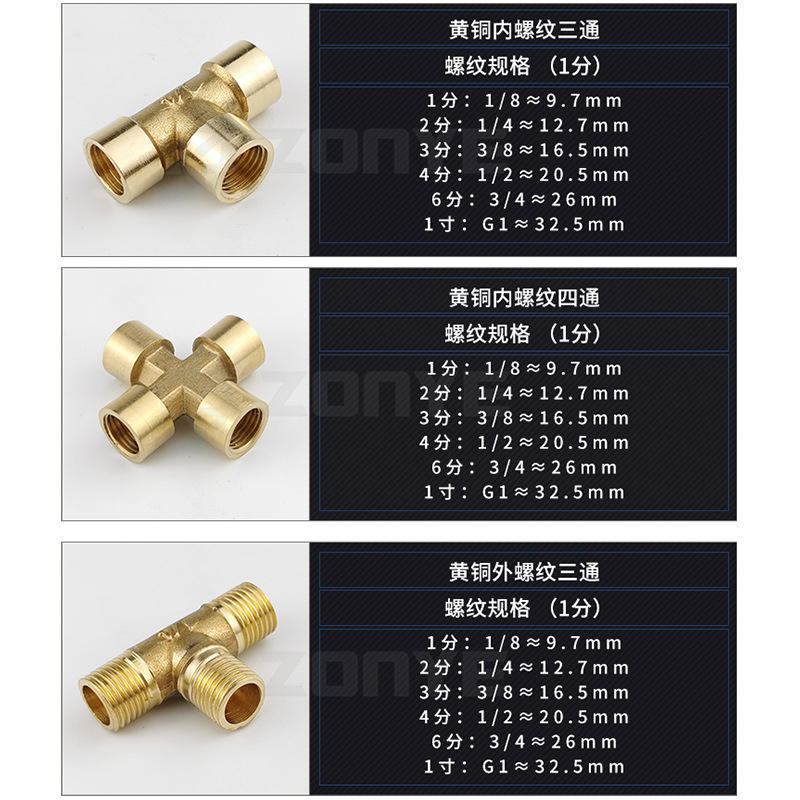 Brass Tee Internal And External Thread Connector 1 2 3 4 6 Point For Gas Water Pipe