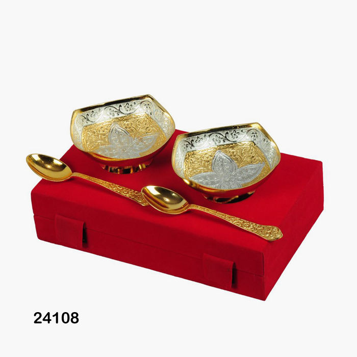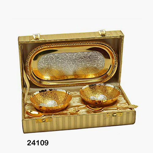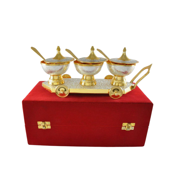 Brass Trolley Bowl Set Large, Dry Fruits Bowls, Metal Bowls With Spoon